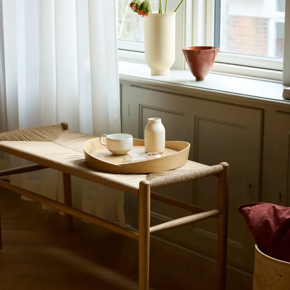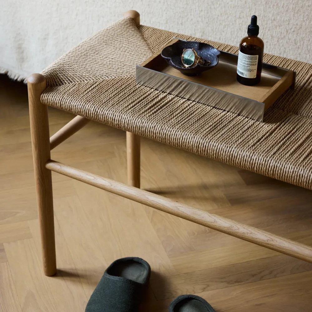 Danskerne er blevet højere i løbet af et par generationer. Og derfor er det også naturligt at opgradere Jørgen Bækmarks velkendte flet-bænk med et par centimeter. Klaverbænken kommer i sortlakeret eg og natureg, begge med naturflet. Den har også mange anvendelsesmuligheder i et hjem uden klaver: I spisestuen, i entréen eller andre steder, hvor der er brug for en lille siddeplads. Bænken blev relanceret i anledning af Jørgen Bækmarks 90 års fødselsdag, hvor man ikke mindst har lagt vægt på de fletmøbler, der både kendetegner hans tid, men samtidig er så tidløse og aktuelle.