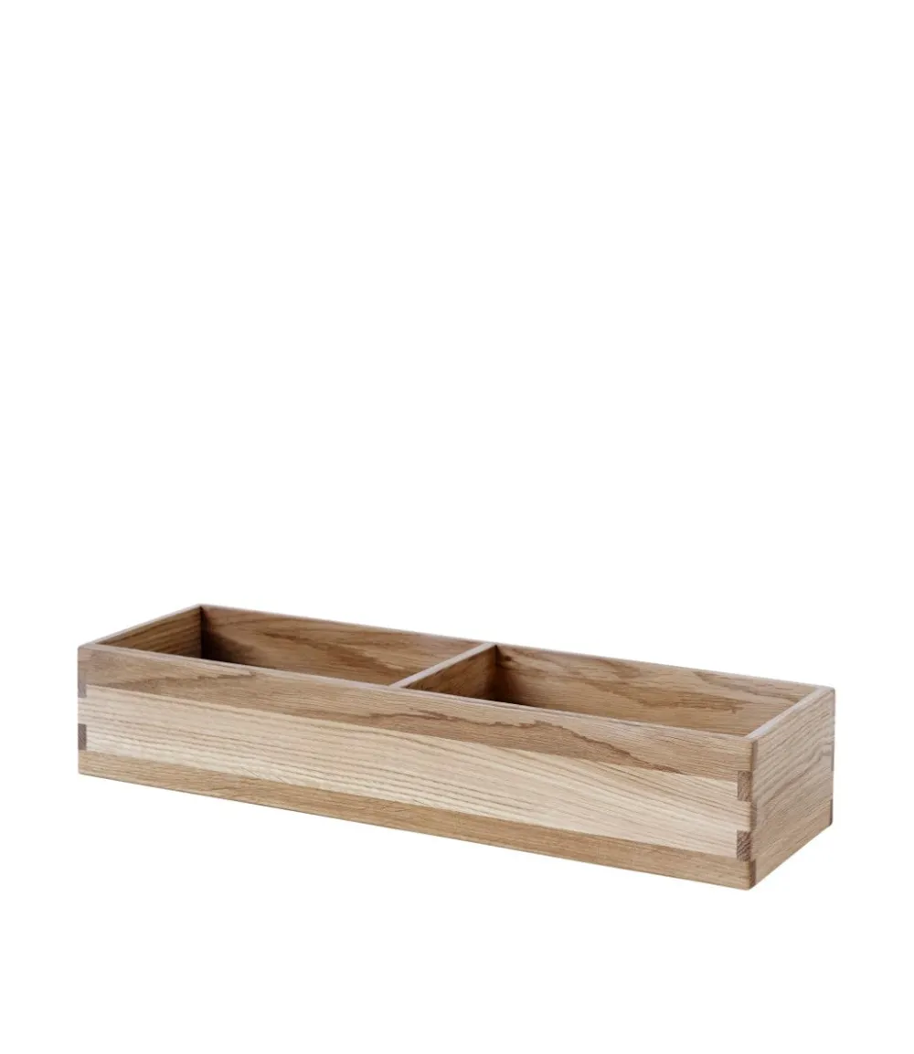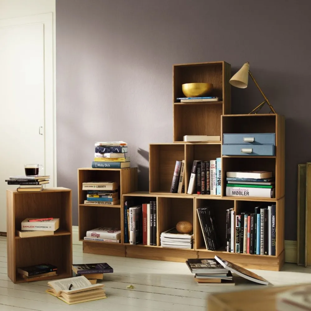 Mogens Kochs reolkasser blev designet helt tilbage i 1944 og blev et symbol på nordisk møbeldesign, der kan ses over hele verden – og i Danmark overalt fra de små hjem til ministerkontorer og bestyrelseslokaler. Den enkle udførelse i højeste kvalitet er da også indbegrebet af det bedste fra funktionalismen og indgår i et utal af forskellige kombinationer, hvilket også er hemmeligheden bag den uopslidelige aktualitet og relevans. Placer dem vandret som en lav boghylde. Sæt dem oven på hinanden til en reol. Eller monter dem på væggen. Reolens naturlige æstetik åbner for et utal af muligheder. Bogkasserne fås i forskellige dybder – alt efter om de skal bruges til bøger eller andet.