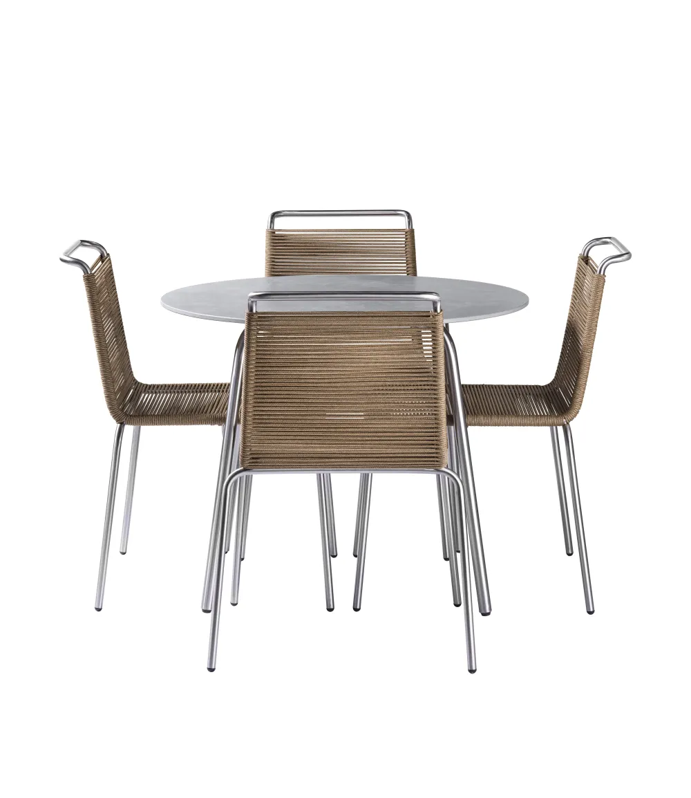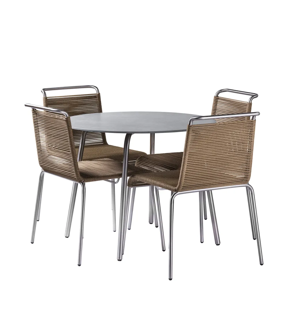 Et rundt bord samler folk på en særlig måde. Med Teglgaard lille havesæt i rund version er der plads til at vende dagens oplevelser og nyde den friske luft. De lette, stabelbare stole og det minimalistiske bord er skabt med funktionalitet og elegance i tankerne – en smuk løsning til alt fra gårdhaven til den lille terrasse.