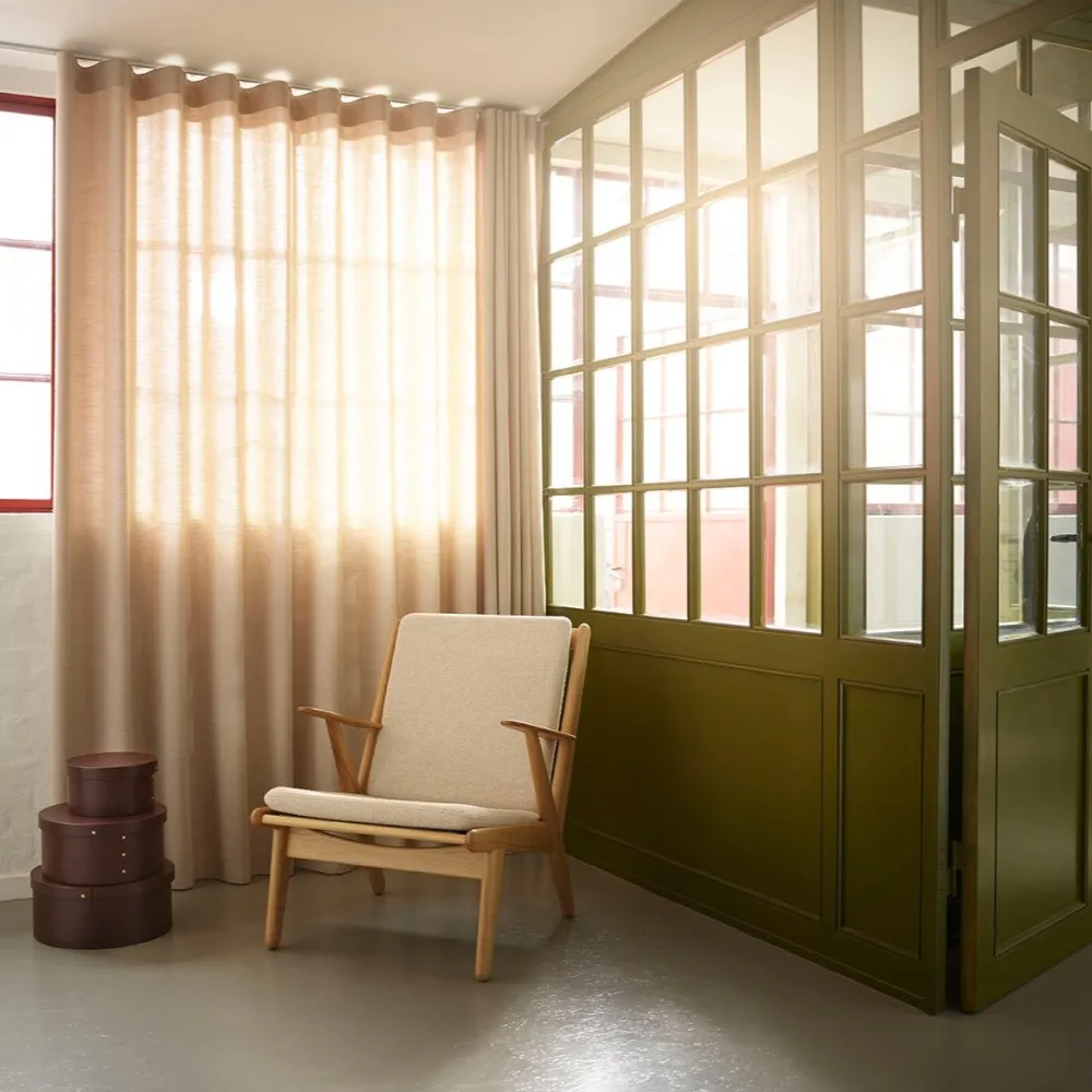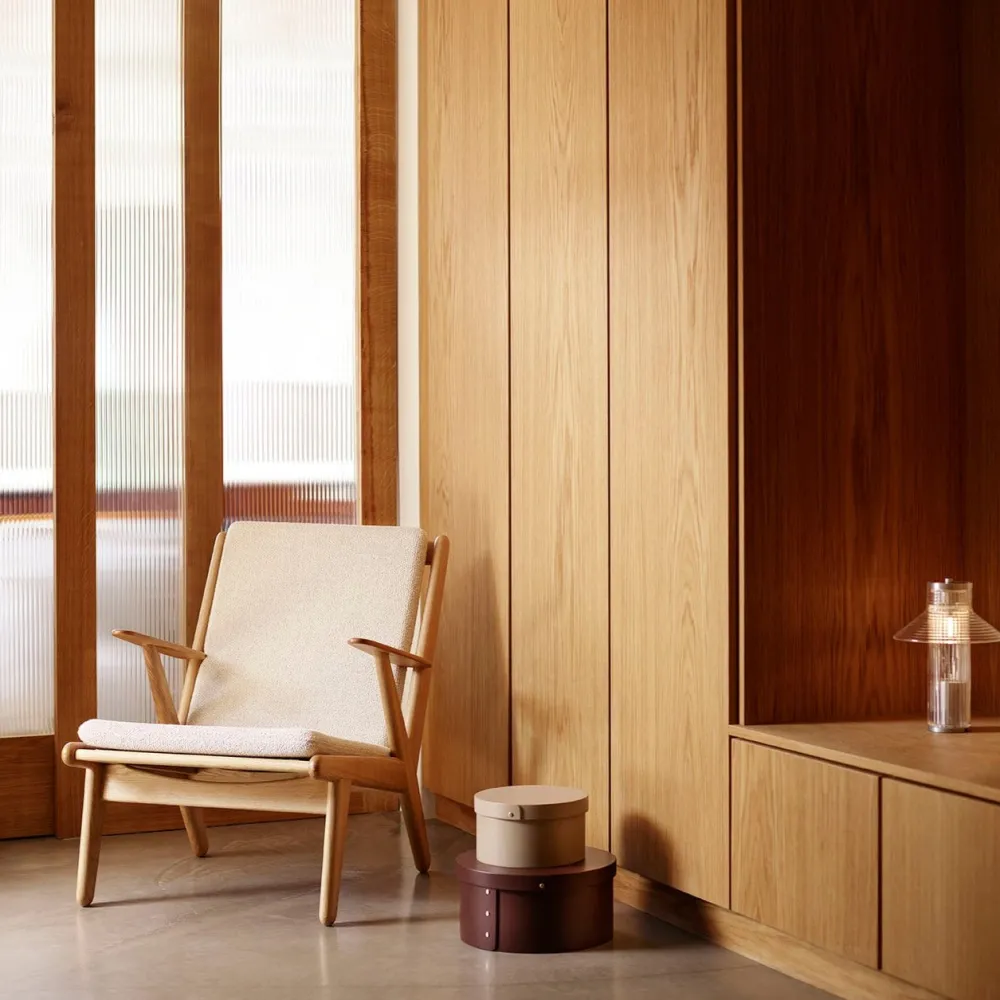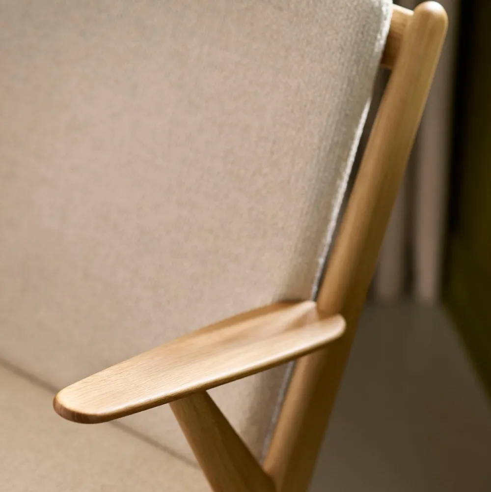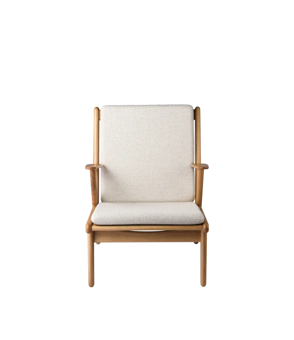 J53 er designet af møbelarkitekt Poul M. Volther i 1953. Designet blev oprindeligt lanceret som både lænestol og 2-personers sofa og er udtryk for et brud med den daværende designtradition, hvor de fuldpolstrede siddemøbler igennem årtier havde domineret stuerne. Nu var der plads til lettere og mere moderne møbler, og det passede perfekt til Volthers enkle og funktionalistiske formsprog. Da stolen blev lanceret i 1953, var Poul M. Volther tegnestueleder hos FDB Møbler, og i kølvandet på præsentationen lancerede flere af tidens store producenter lignende designs. J53 relanceres i 2024, da den er retrospektiv og relevant på samme tid, og er en af mange fantastiske stole fra Volthers hånd, der minder os om vores historie og arv.