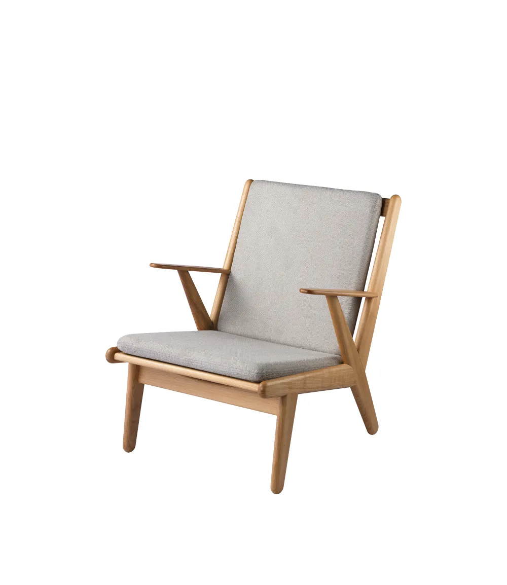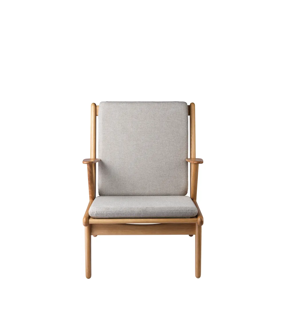 J53 er designet af møbelarkitekt Poul M. Volther i 1953. Designet blev oprindeligt lanceret som både lænestol og 2-personers sofa og er udtryk for et brud med den daværende designtradition, hvor de fuldpolstrede siddemøbler igennem årtier havde domineret stuerne. Nu var der plads til lettere og mere moderne møbler, og det passede perfekt til Volthers enkle og funktionalistiske formsprog. Da stolen blev lanceret i 1953, var Poul M. Volther tegnestueleder hos FDB Møbler, og i kølvandet på præsentationen lancerede flere af tidens store producenter lignende designs. J53 relanceres i 2024, da den er retrospektiv og relevant på samme tid, og er en af mange fantastiske stole fra Volthers hånd, der minder os om vores historie og arv.