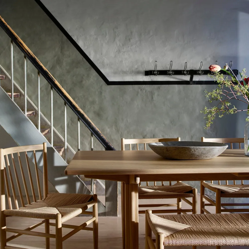 Denne fletserie af den kendte FDB-designer Jørgen Bækmark består af flere møbler, heriblandt den klassiske og ikoniske spisebordsstol J80. Stolen er fra FDB Møblers guldalder i 1950’erne, men har overlevet sin egen tid på grund af sit elegante og tidløse udtryk. J80, der også kan fås med armlæn og fungere som en fritstående stol, er behagelig at sidde i over længere tid, da den er fremstillet i kvalitetsmaterialer fra flet til det massive træ.