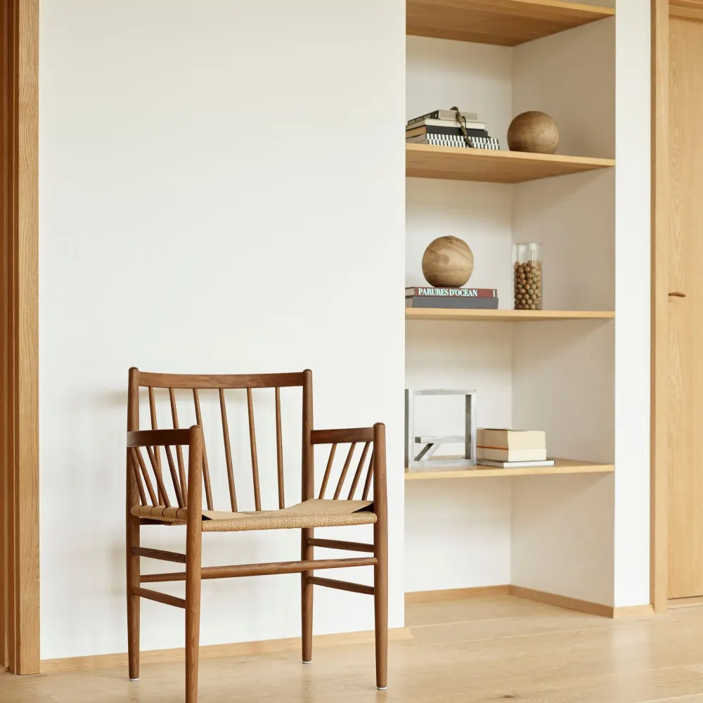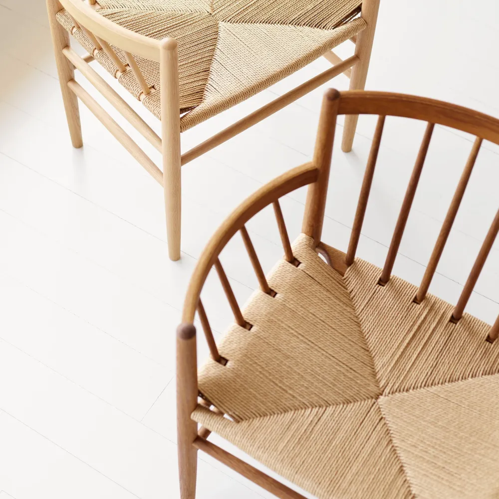 Denne fletserie af den kendte FDB-designer Jørgen Bækmark består af flere møbler, heriblandt den klassiske og ikoniske spisebordsstol J80. Serien er fra FDB Møblers guldalder i 1950’erne, men har overlevet sin egen tid på grund af sit elegante og tidløse udtryk. J81, er udgaven med armlæn og kan fungere som en fritstående stol. Den er behagelig at sidde i over længere tid, da den er fremstillet i kvalitetsmaterialer fra flet til det massive træ.
