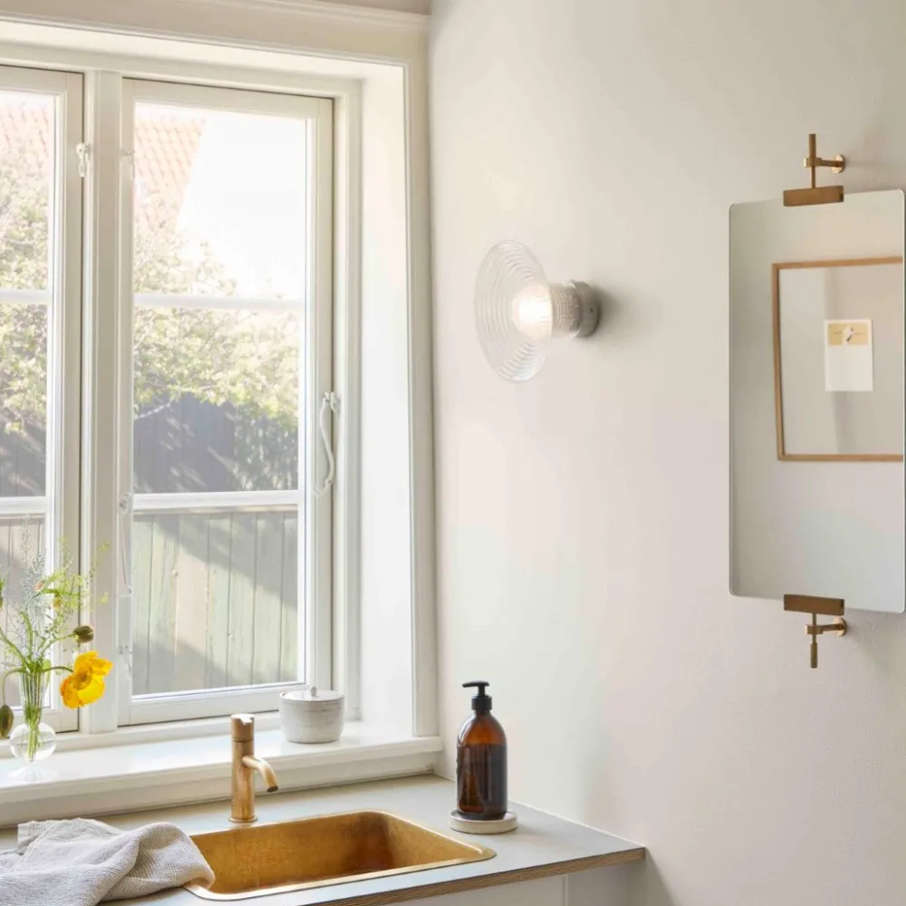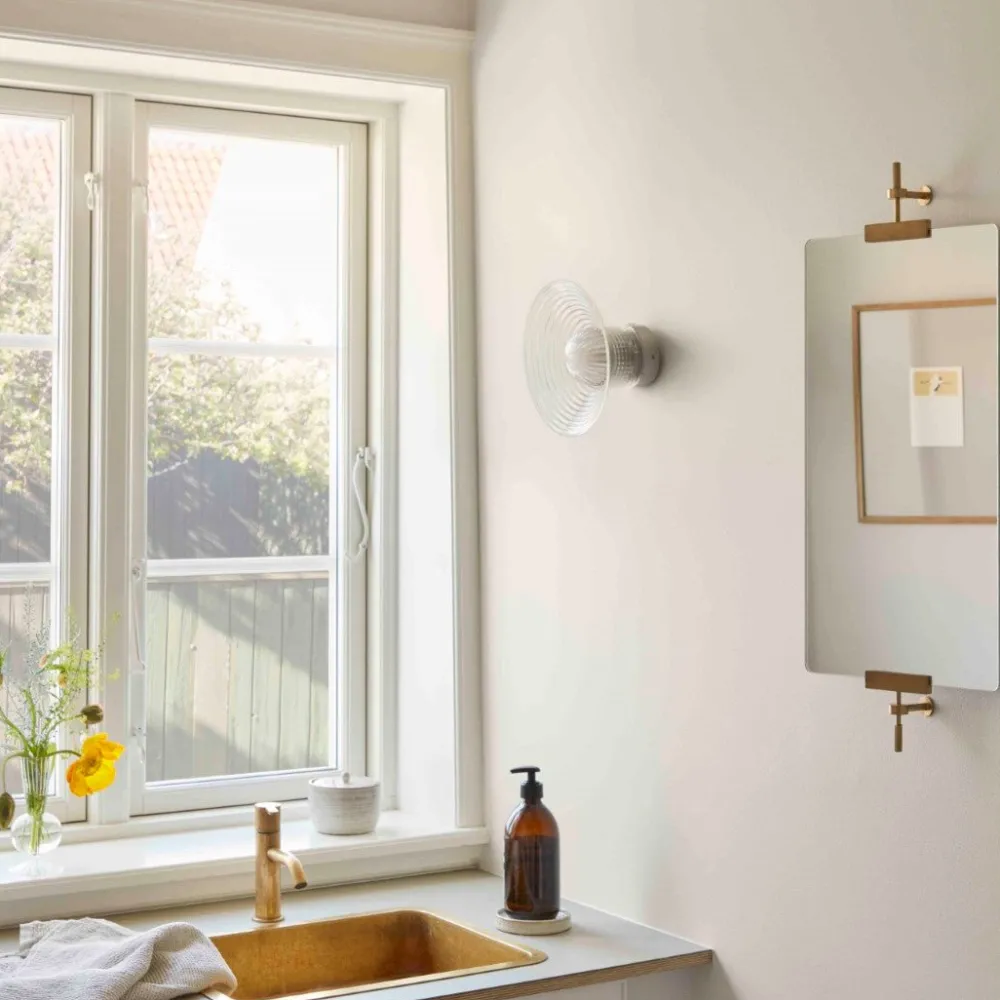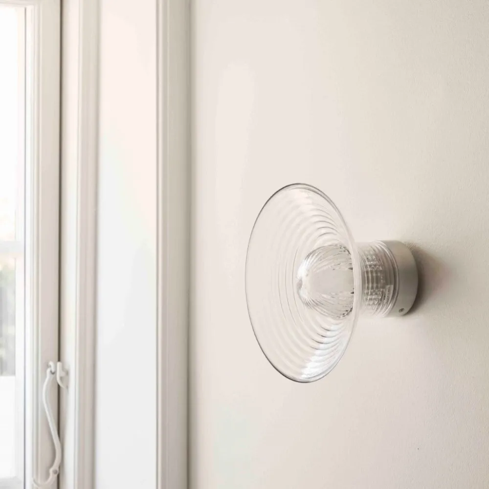 Sletterhage lampe-serie er opkaldt efter det ikoniske fyrtårn på Helgenæs. Sletterhage Fyr ligger midt i Danmark og har igennem årtier oplyst området og hjulpet både fiskere, lokale og turister med at navigere i det smukke område. Sletterhage-lamperne er udført i riflet glas i en transparent konstruktion, og inspirationen fra fyrtårnets mange industrielle elementer ses tydeligt i Laura Bildes design. Ved at bruge de samme glaskomponenter på forskellige måder har danske Laura Bilde skabt en tæt sammentømret lampefamilie, der elegant balancerer form og funktionalitet.