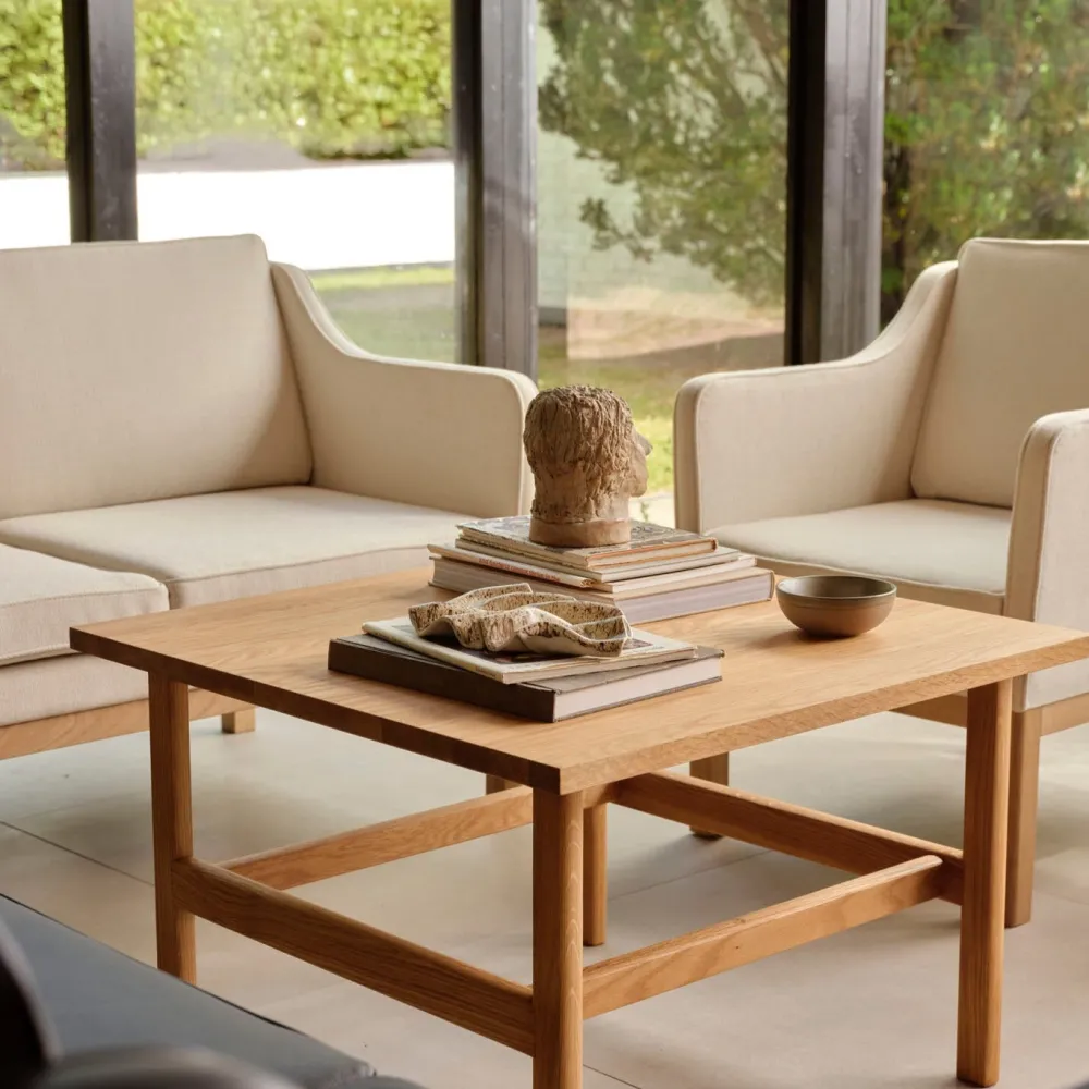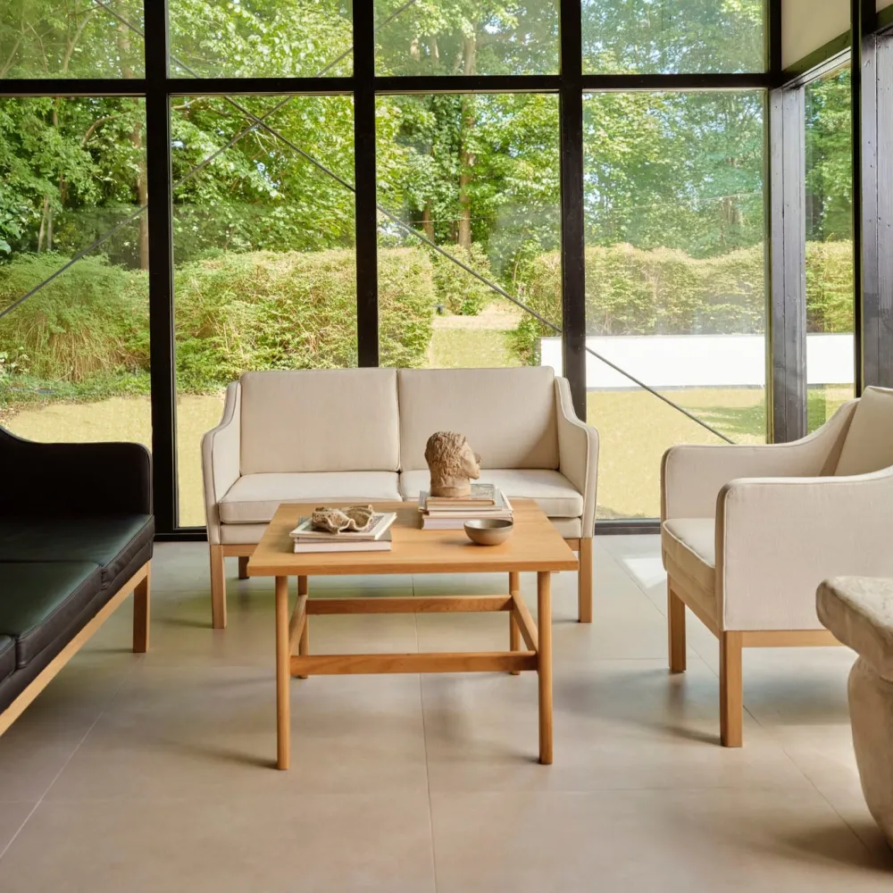 I 1947 tegnede Mogens Koch en let og funktionalistisk sofa som særbestilling til Gammel Kjøgegaard nær Køge. Efterkrigstiden gav plads og overskud til nye tendenser og former, og den enkle funktionalisme var et holdepunkt for mange af tidens formgivere. Sofaserien af Mogens Koch er et fantastisk vidnesbyrd om netop den bevægelse i designkulturen. En let sofa med let svajende armlæn, placeret resolut på et selvstændigt stel. At møbel og stel står klart defineret hver for sig er et af Mogens Kochs kendetegn. I modsætning til møbler af knap så god kvalitet, der ofte kunne gemme sig bag polster, ønskede Mogens Koch en ærlig eksponering af sit håndværk.