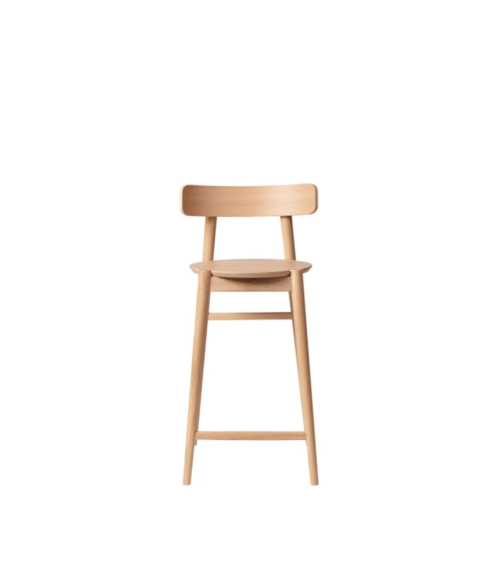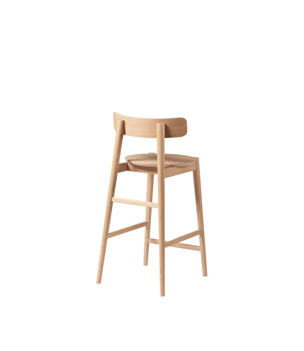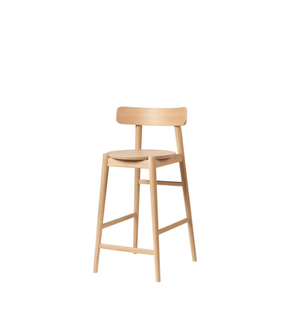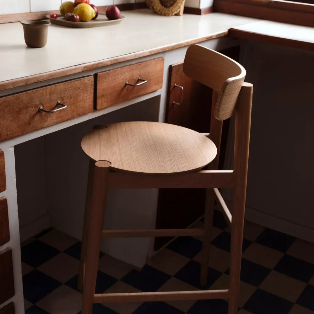Øst bar- og counterstol er designet med alsidighed for øje, og de passer godt ind i alt fra små private lejligheder til større restauranter. Stolene er skabt med fokus på samvær, og designet gør det nemt at dreje til både højre og venstre, så du kan deltage i samtalerne rundt om dig. Fodpindene er placeret i forskellige højder og understøtter flere siddepositioner, mens den bagerste, højtplacerede, fodpind også fungerer som en praktisk aflæggeplads til overtøj. Med Øst har Stine Weigelt ønsket at skabe et design, der er både elegant og funktionelt – og viderefører de gennemgående træk fra møbelserierne Søs og Anker. Alle tre serier deler fællestræk som koniske ben, rene linjer og det karakteristiske cirkelslag, hvor benene møder sædet. Øst-stolene er en naturlig del af Stine Weigelts designunivers, der kendetegnes ved funktionelle og brugbare møbler skabt med omtanke for de mennesker, der bruger dem i hverdagen.