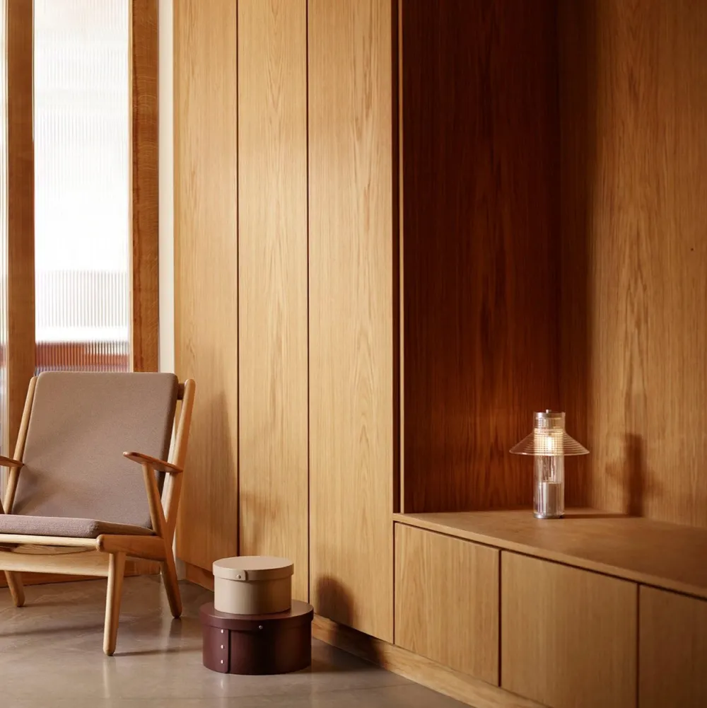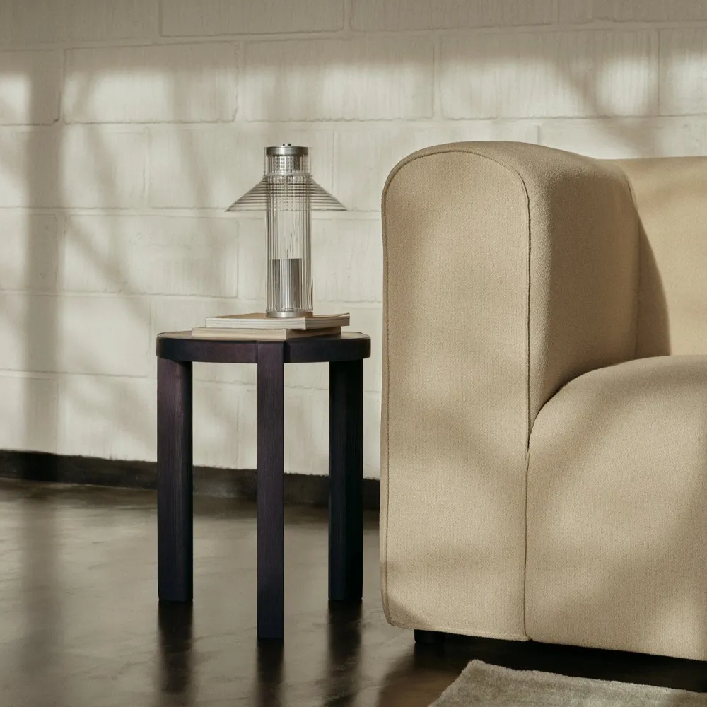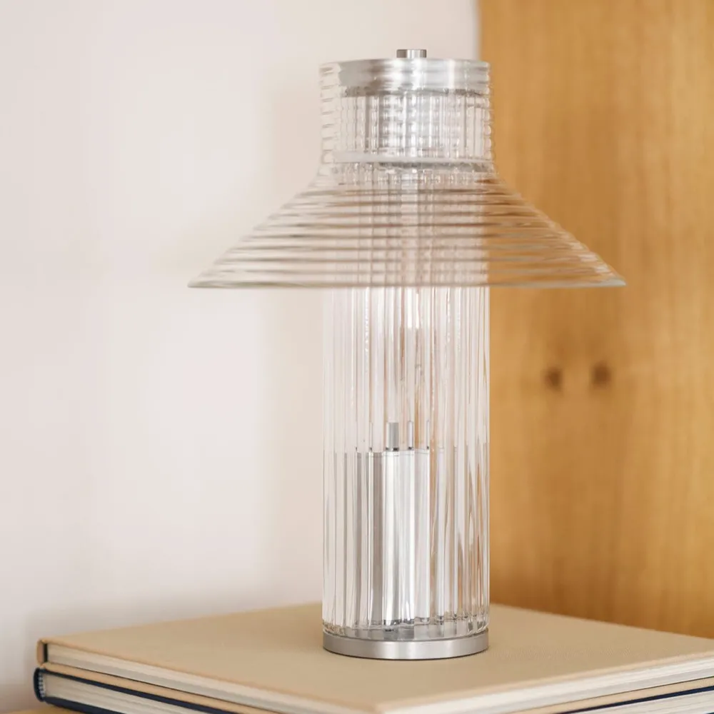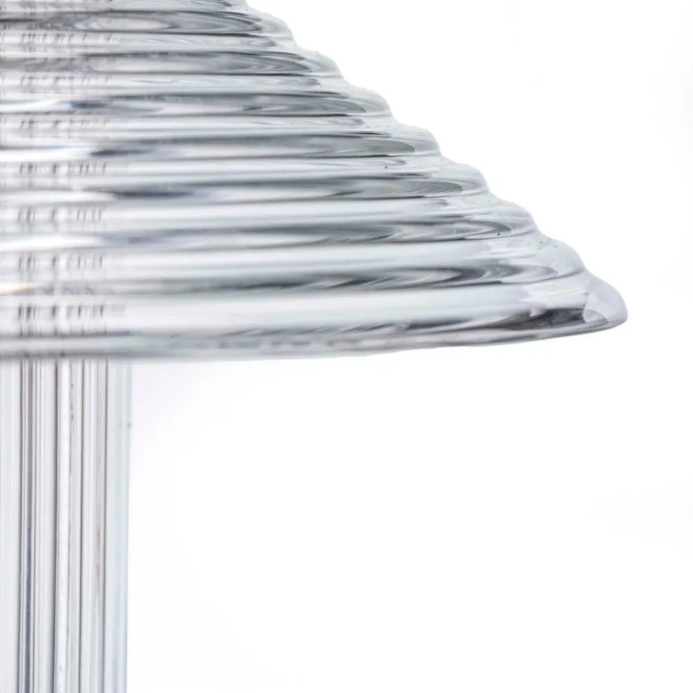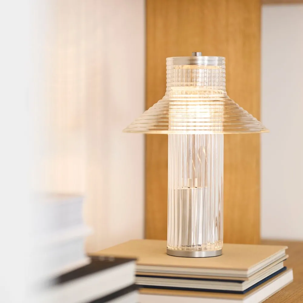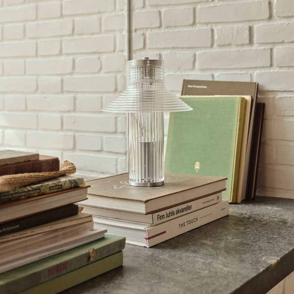 Sletterhage lampe-serie er opkaldt efter det ikoniske fyrtårn på Helgenæs. Sletterhage Fyr ligger midt i Danmark og har igennem årtier oplyst området og hjulpet både fiskere, lokale og turister med at navigere i det smukke område. Sletterhage-lamperne er udført i riflet glas i en transparent konstruktion, og inspirationen fra fyrtårnets mange industrielle elementer ses tydeligt i Laura Bildes design. Ved at bruge de samme glaskomponenter på forskellige måder har danske Laura Bilde skabt en tæt sammentømret lampefamilie, der elegant balancerer form og funktionalitet.