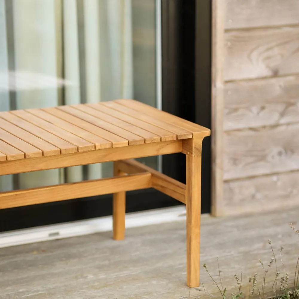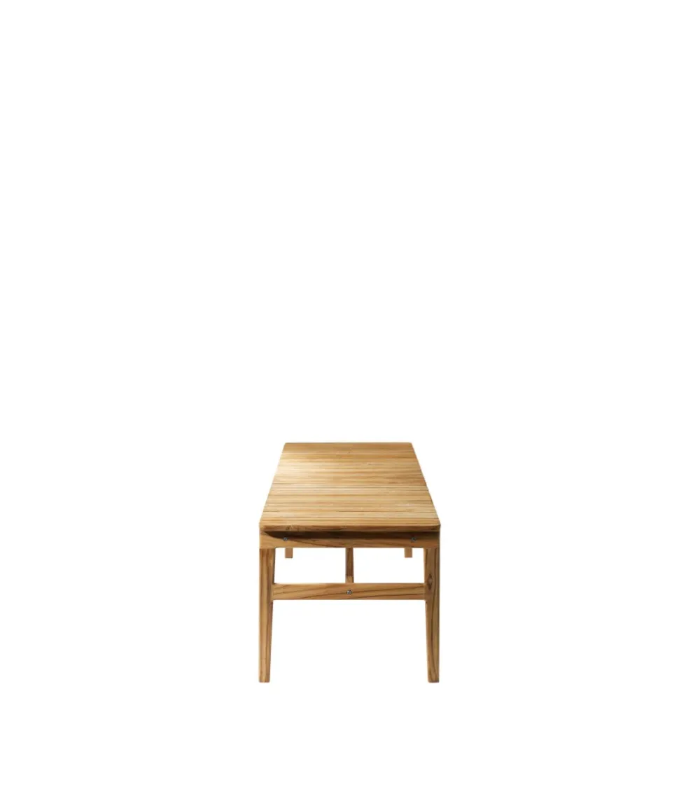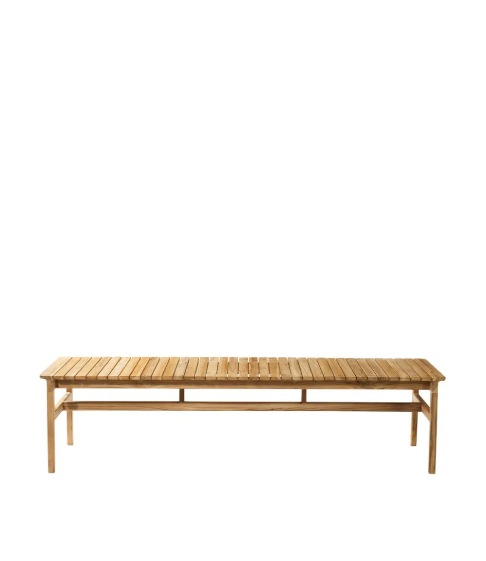 Bænken uden ryg og armlæn kan bruges sammen med spisebordet, men også til andre formål. Man kan ligge og slappe af på den, bruge den som siddeplads i et hjørne af haven eller bare som et underlag til at stille ting på. Bænken matcher de andre møbler i Sammen-serien, som spisebordet, loungestolen og fodskamlen, men skiller sig alligevel ud med sit minimalistiske look og sine rene linjer.