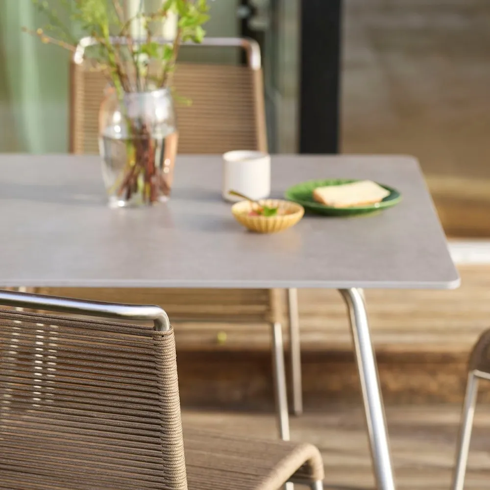 Designduoen Salto & Sigsgaard designede i 2022 for første gang i samarbejde med FDB Møbler havestolen Teglgaard. Serien er blevet udvidet med et minimalistisk og let havebord i rustfrit stål, der, ligesom stolen, er skræddersyet til det danske sommervejr.