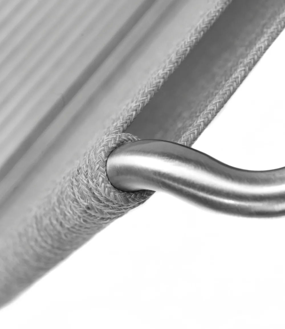 Teglgaard loungesættet kombinerer funktionalitet med æstetisk design, skabt til at modstå det lunefulde danske vejr. Bestående af en loungestol og skammel, viderefører sættet det stilrene og funktionelle design fra havestolen. Møblerne er fremstillet i børstet rustfrit stål og vævet polyester-snor, som både er stærkt, holdbart og hurtigt tørrer efter regn. Snorene er valgt for deres styrke og langvarige holdbarhed, hvilket gør møblerne perfekte til udendørs brug.