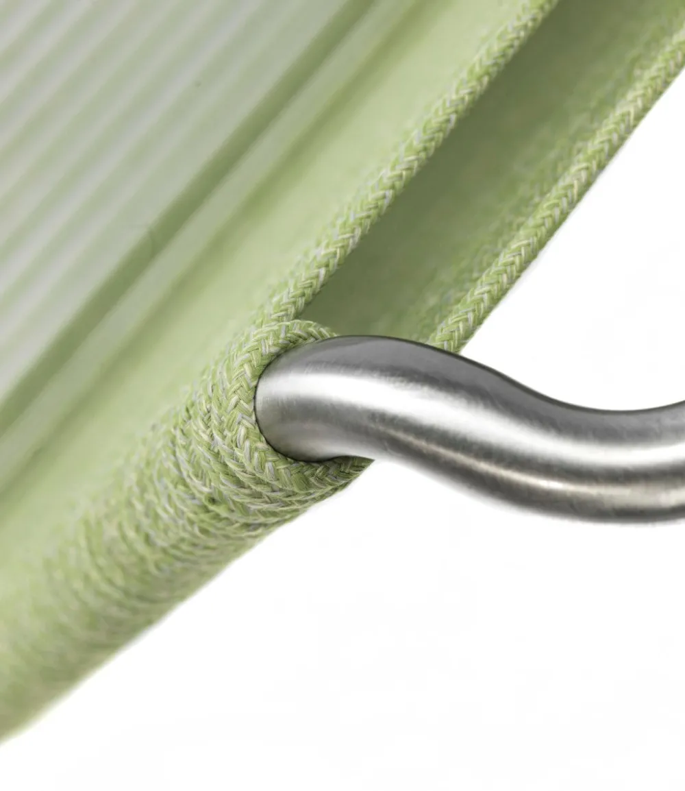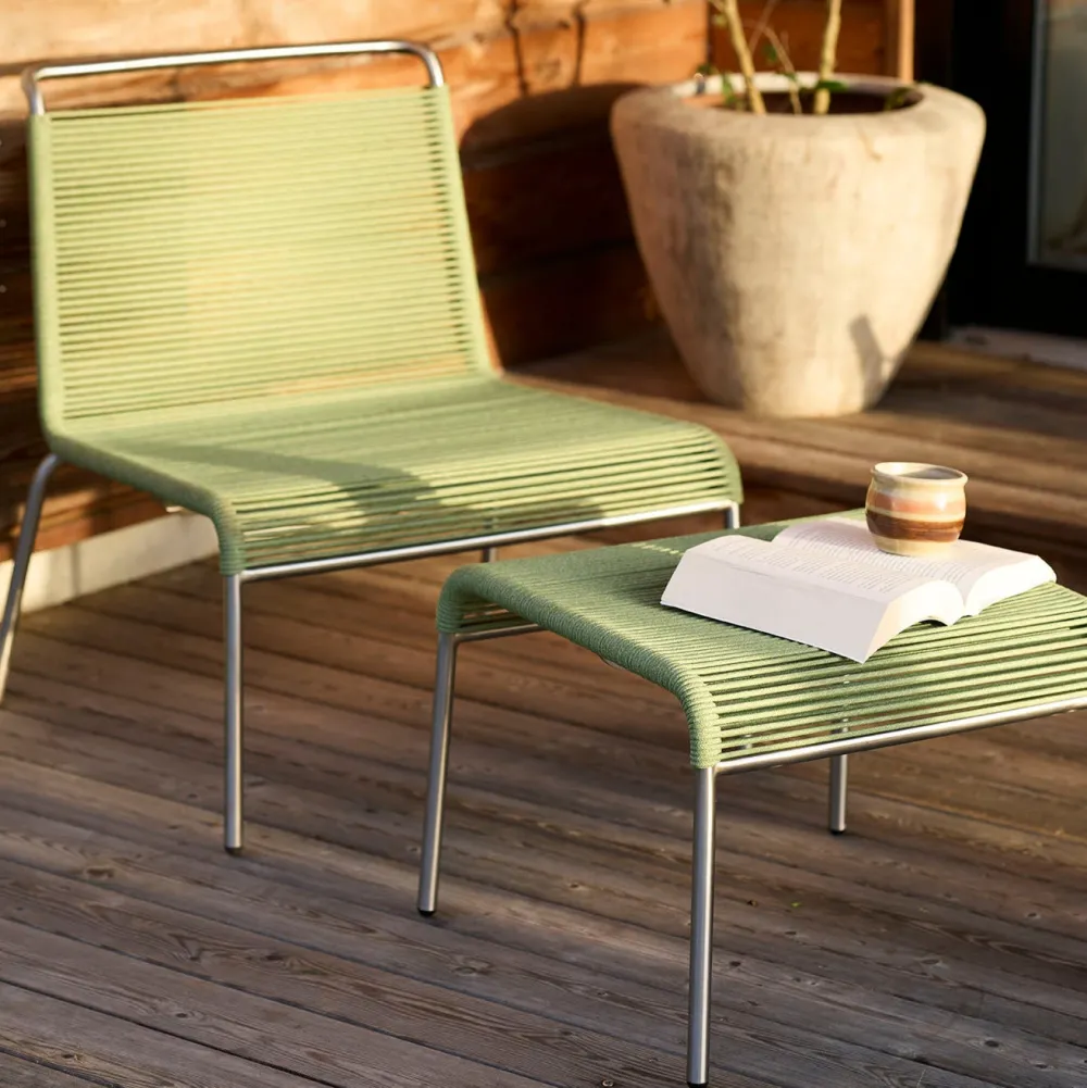 Teglgaard loungesættet kombinerer funktionalitet med æstetisk design, skabt til at modstå det lunefulde danske vejr. Bestående af en loungestol og skammel, viderefører sættet det stilrene og funktionelle design fra havestolen. Møblerne er fremstillet i børstet rustfrit stål og vævet polyester-snor, som både er stærkt, holdbart og hurtigt tørrer efter regn. Snorene er valgt for deres styrke og langvarige holdbarhed, hvilket gør møblerne perfekte til udendørs brug.