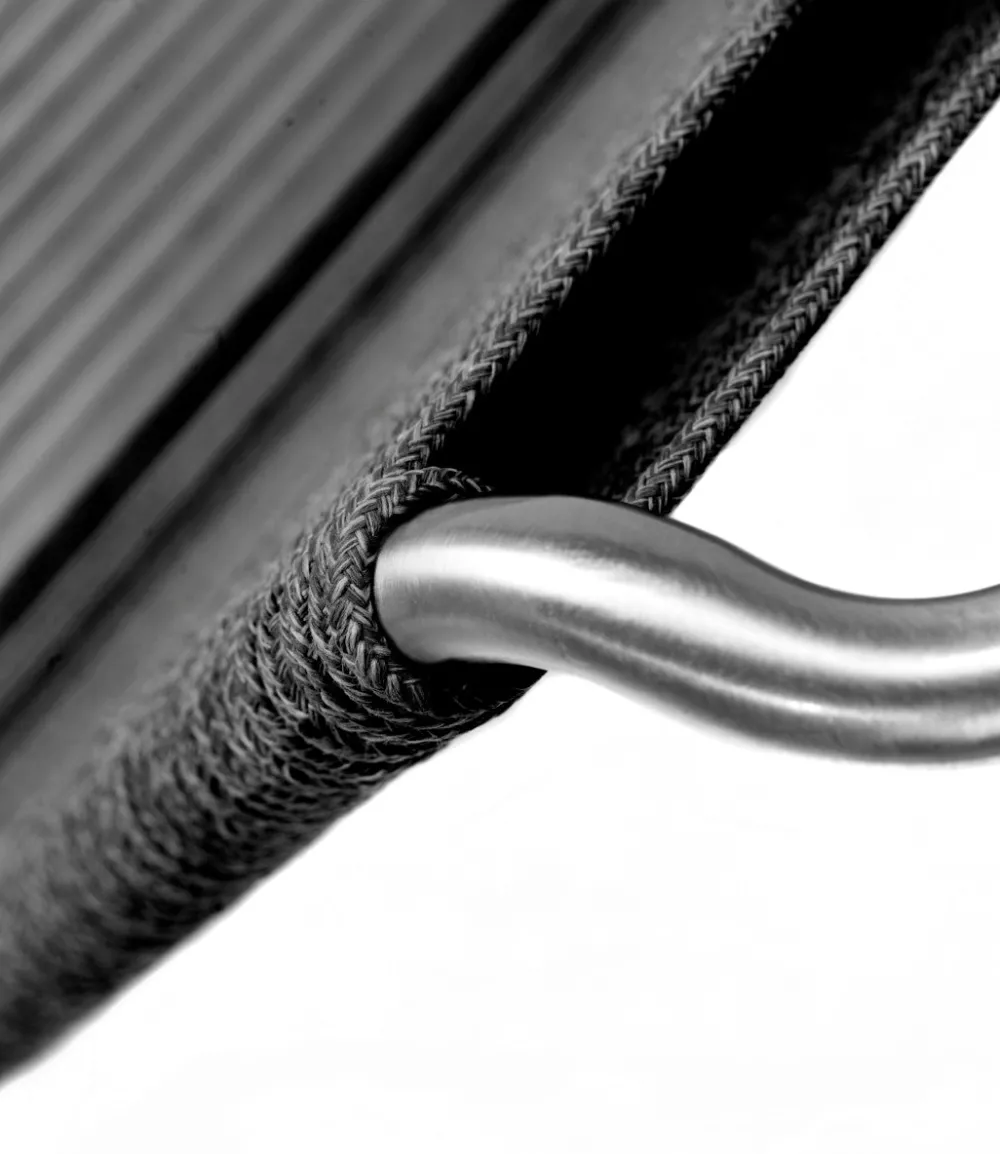 Teglgaard loungesættet kombinerer funktionalitet med æstetisk design, skabt til at modstå det lunefulde danske vejr. Bestående af en loungestol og skammel, viderefører sættet det stilrene og funktionelle design fra havestolen. Møblerne er fremstillet i børstet rustfrit stål og vævet polyester-snor, som både er stærkt, holdbart og hurtigt tørrer efter regn. Snorene er valgt for deres styrke og langvarige holdbarhed, hvilket gør møblerne perfekte til udendørs brug.