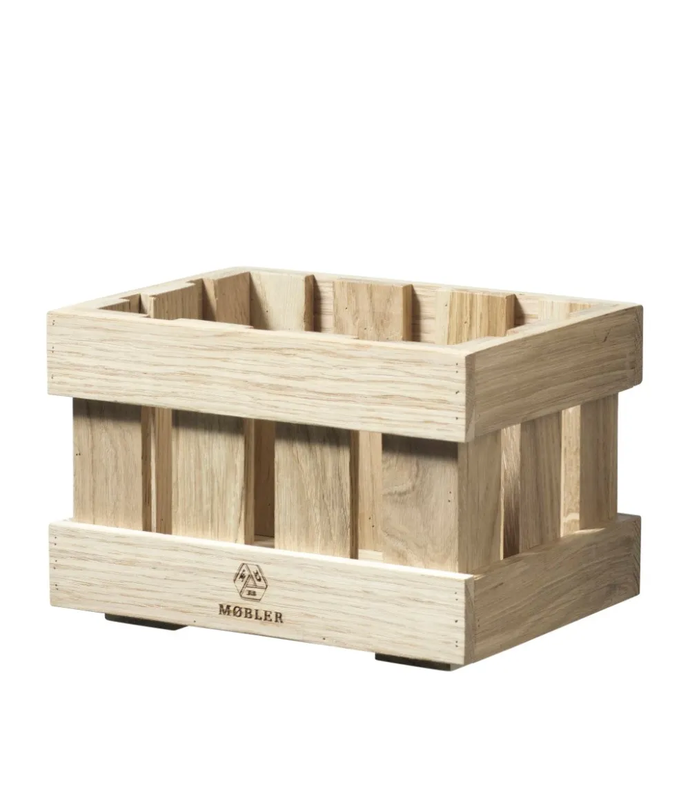 De smukke Æbletoft-kasser er designet af Monica Ritterband. De er et moderne bud på de klassiske æblekasser, som vi i Danmark har kendt og høstet frugt i igennem generationer. Æbletoft kan stables og bruges til opbevaring og organisering af større og mindre ting, både ude og inde, de fås i fem forskellige størrelser, som kan kombineres, så de passer til dit behov. Kasserne er lavet i massivt egetræ og har en flot, levende overflade.