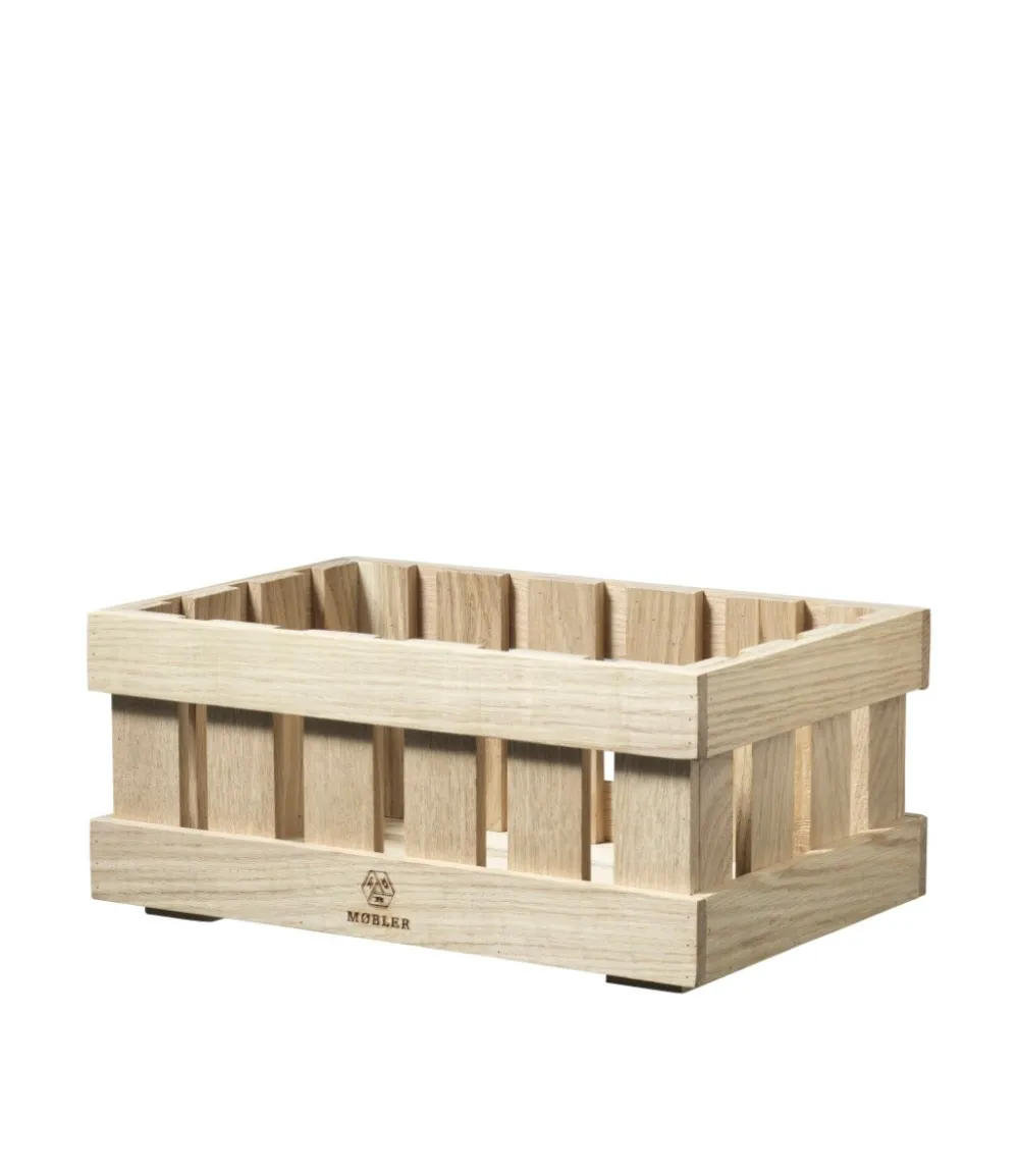 De smukke Æbletoft-kasser er designet af Monica Ritterband. De er et moderne bud på de klassiske æblekasser, som vi i Danmark har kendt og høstet frugt i igennem generationer. Æbletoft kan stables og bruges til opbevaring og organisering af større og mindre ting, både ude og inde, de fås i fem forskellige størrelser, som kan kombineres, så de passer til dit behov. Kasserne er lavet i massivt egetræ og har en flot, levende overflade.