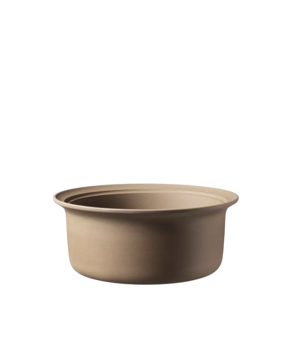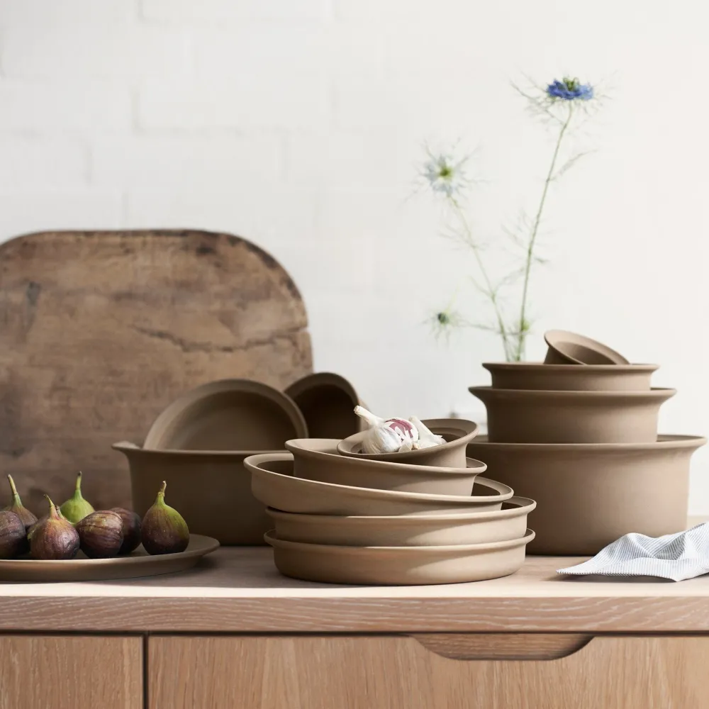 Stentøjsserien Ildpot var i 1970’erne et nybrud inden for den danske husholdning. Kvinderne var kommet ud på arbejdsmarkedet, hvilket satte nye krav til madlavning og servering. Med Ildpot kunne stellet gå direkte fra fryseren, ind i ovnen og videre hen på middagsbordet. Derved blev aftensmåltidet både let og overskueligt. FDB har relanceret denne ikoniske stentøjsserie, der blev tegnet af den anerkendte designer Grethe Meyer (1918-2008), som hørte til blandt den danske designelite og som havde et livslangt arbejdssamarbejde med møbelarkitekten Børge Mogensen. For Grethe Meyer var det afgørende, at Ildpot var et funktionelt stel. Derfor undersøgte hun nøje, hvordan de mange forskellige skåle og fade skulle udformes for at udnytte pladsen i forbrugerens ovn og skabe. Hun gennemprøvede alle delene i sit eget køkken og sikrede derved, at de var funktionsdygtige og pladsbesparende. Ildpot kan desuden gå i opvaskemaskinen, i mikrobølgeovnen og sættes på et gaskomfur. Ikke egnet til bål.