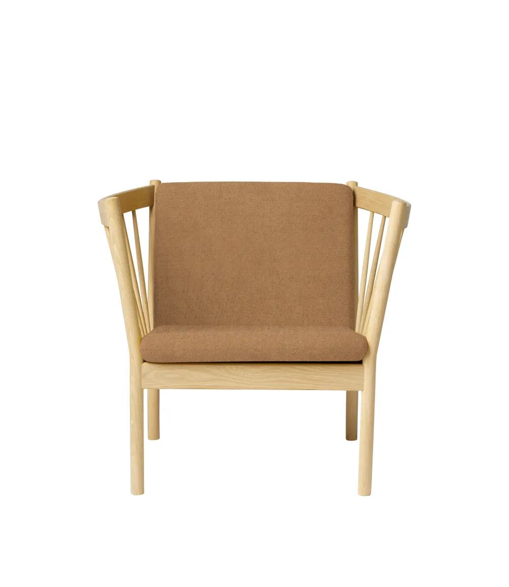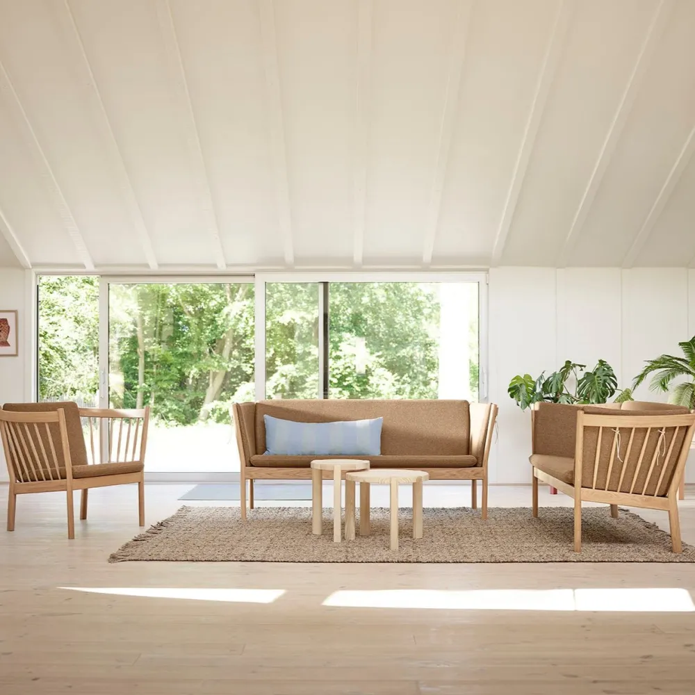 Det er ikke uden grund, at tremmelænestolen J146 har været et smukt fikspunkt i mange danske hjem. Med sine runde former er den typisk for det klassiske danske møbeldesign, og samtidig inviterer de runde armlæn til fordybelse og afslapning for den siddende. Erik Ole Jørgensens serie af tremmemøbler er fra 1978 og har tydelige referencer til de andre store designere, der har skabt fundamentet hos FDB Møbler. Erik Ole Jørgensen havde baggrund som både møbelpolstrer og møbelarkitekt, og måske er det derfor, at samspillet mellem hynder og møbel er specielt vellykket her.