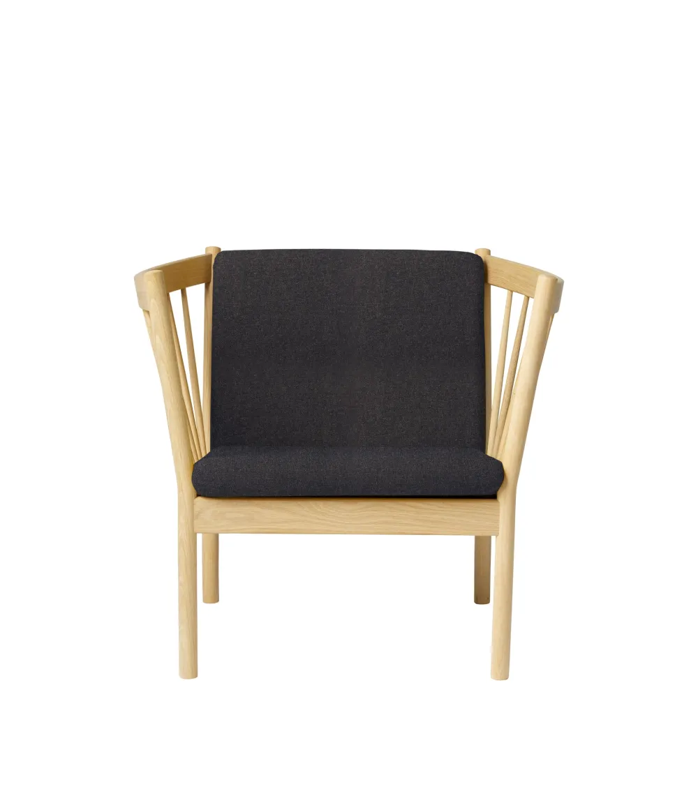 Det er ikke uden grund, at tremmelænestolen J146 har været et smukt fikspunkt i mange danske hjem. Med sine runde former er den typisk for det klassiske danske møbeldesign, og samtidig inviterer de runde armlæn til fordybelse og afslapning for den siddende. Erik Ole Jørgensens serie af tremmemøbler er fra 1978 og har tydelige referencer til de andre store designere, der har skabt fundamentet hos FDB Møbler. Erik Ole Jørgensen havde baggrund som både møbelpolstrer og møbelarkitekt, og måske er det derfor, at samspillet mellem hynder og møbel er specielt vellykket her.