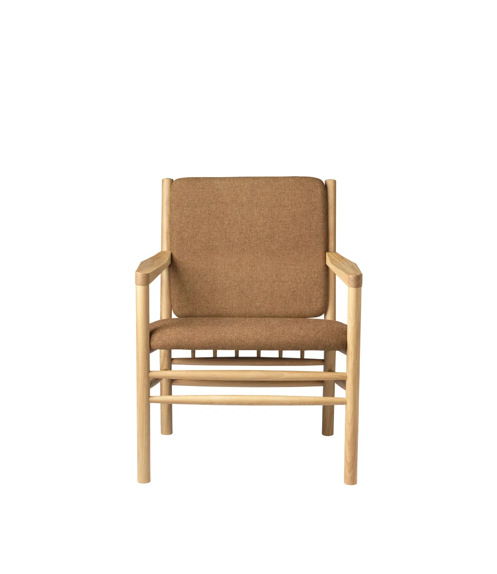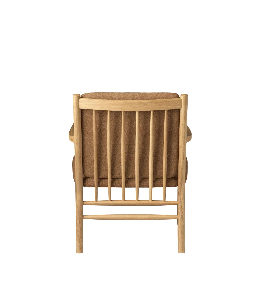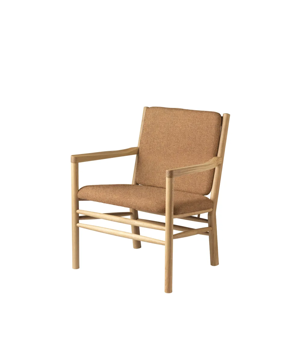 Loungestolen J147 er i familie med de andre møbler i Erik Ole Jørgensens berømte serie fra 1978, men har mere enkle armlæn uden tremmer. Det er en meget komfortabel lænestol, der indbyder til fordybelse, læsning og anden kvalitetstid. Den lægger sig i den fineste danske møbeltradition – uden at råbe op. Erik Ole Jørgensens serie af tremmemøbler er fra 1978 og har tydelige referencer til de andre store designere, der har skabt fundamentet hos FDB Møbler. Erik Ole Jørgensen havde baggrund som både møbelpolstrer og møbelarkitekt, og måske er det derfor, at samspillet mellem hynder og møbel er specielt vellykket her.