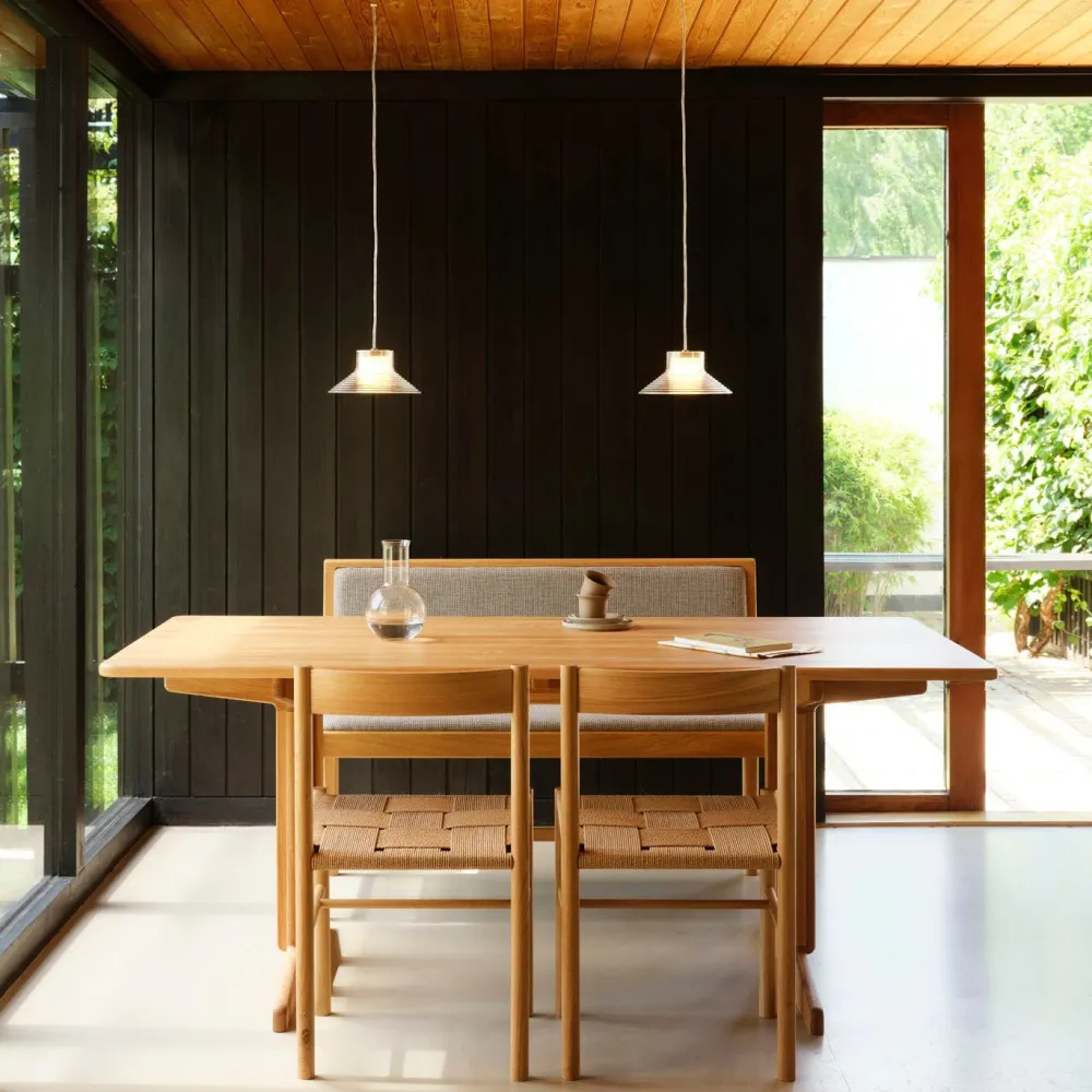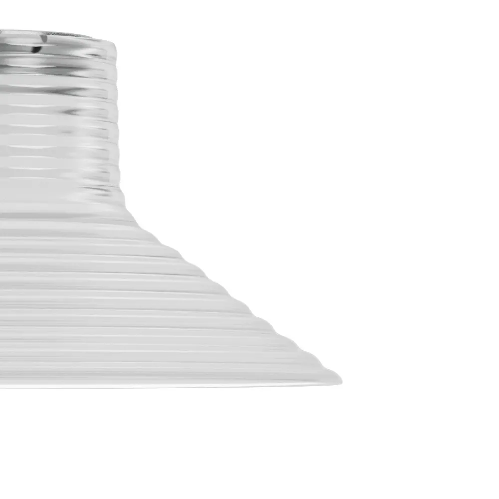 Sletterhage lampe-serie er opkaldt efter det ikoniske fyrtårn på Helgenæs. Sletterhage Fyr ligger midt i Danmark og har igennem årtier oplyst området og hjulpet både fiskere, lokale og turister med at navigere i det smukke område. Sletterhage-lamperne er udført i riflet glas i en transparent konstruktion, og inspirationen fra fyrtårnets mange industrielle elementer ses tydeligt i Laura Bildes design. Ved at bruge de samme glaskomponenter på forskellige måder har danske Laura Bilde skabt en tæt sammentømret lampefamilie, der elegant balancerer form og funktionalitet.