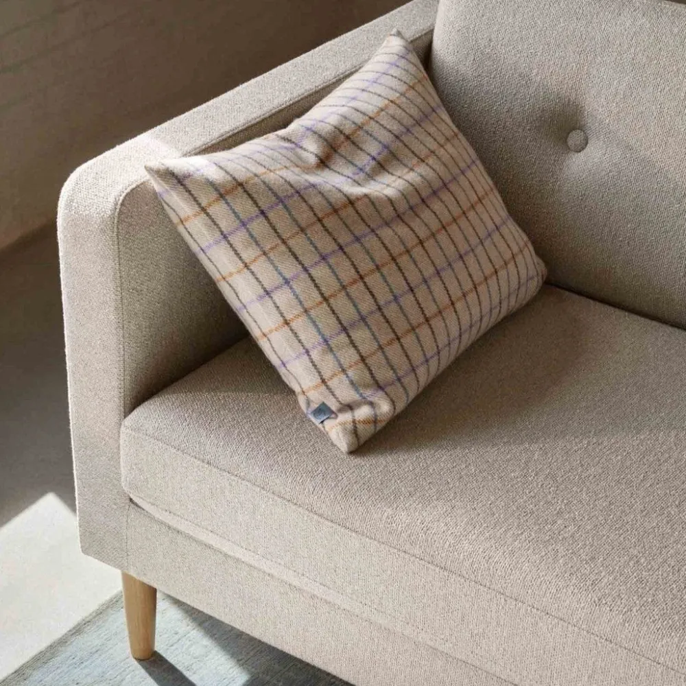 Tekstilet til Søndergadepuderne er vævet på Kjellerup Væveri, som siden 1950 har vævet og designet smukke og slidstærke tekstiler til møbelbranchen. Kjellerup Væveri har en stærk tradition for gedigent håndværk og stræber efter at gøre ethvert produkt så langtidsholdbart som muligt, både med hensyn til funktion, kvalitet og æstetik. Det stemmer utroligt godt overens med FDB Møblers værdier og vores syn på bæredygtighed, og vi er meget glade for samarbejdet. Tekstildesigner Lykke Bloch Kjær har givet det klassiske hestedækken nyt liv med smukke nye farver. Navnet stammer fra væveriets adresse på Søndergade 137 i Kjellerup.