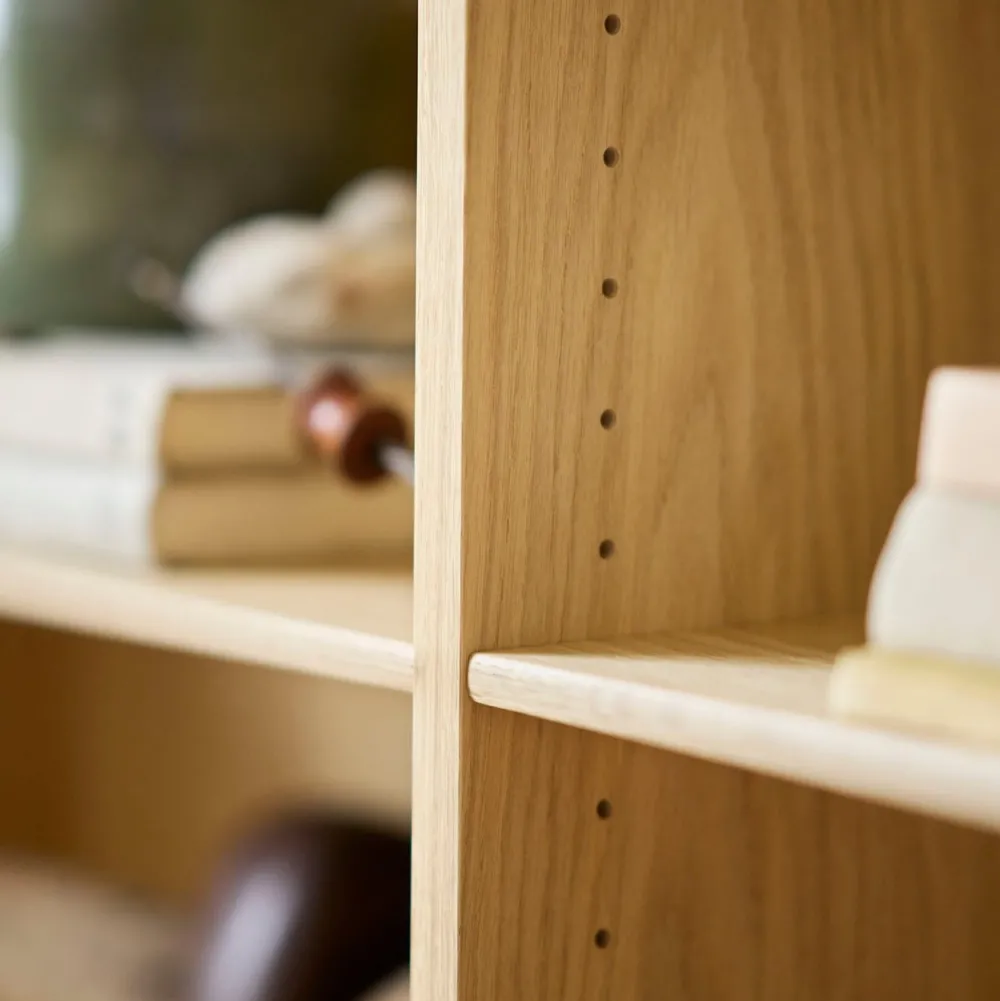 Børge Mogensen, FDB Møblers måske mest berømte arkitekt, er kendt for sin tremmesofa og sine stole. Men han elskede også de praktiske byggemøbler, som han begyndte at udvikle i starten af 1950’erne og fortsatte med at arbejde på i resten af sin karriere. Hylderne kan kombineres på kryds og tværs i uendelige muligheder alt efter, hvilke behov der opstår. Byggemøblerne er både smukke og praktiske, idet de ikke mindst giver mulighed for at optimere pladsen.