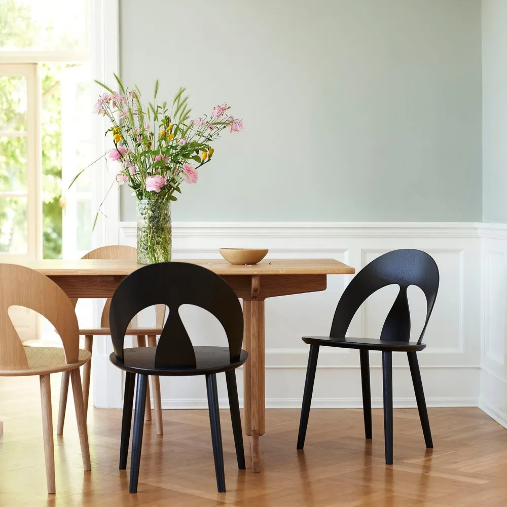Tankerne bag Børge Mogensens gamle J45 spisebordsstol virker helt aktuelle og i takt med tiden i dag. Stolen afspejler naturens former og træet som materiale og kombinerer et stilrent design med komfort. Det var en næsten revolutionerende tanke, da FDB Møbler lancerede J45 i 1950. Stolen skiller sig også ud fra det, Børge Mogensen senere blev kendt for: De lidt firkantede stole og sofaer. Det karakteristiske ryglæn, der danner en organisk skal, læner sig lidt tilbage og fjedrer lidt, hvilket gør stolen meget komfortabel. Et ikonisk værk, der både viser samspillet mellem natur og design, som også fortæller historien om en af vores mest kendte møbeldesigneres tidlige arbejde. Et stilsikkert valg til spisestuen.