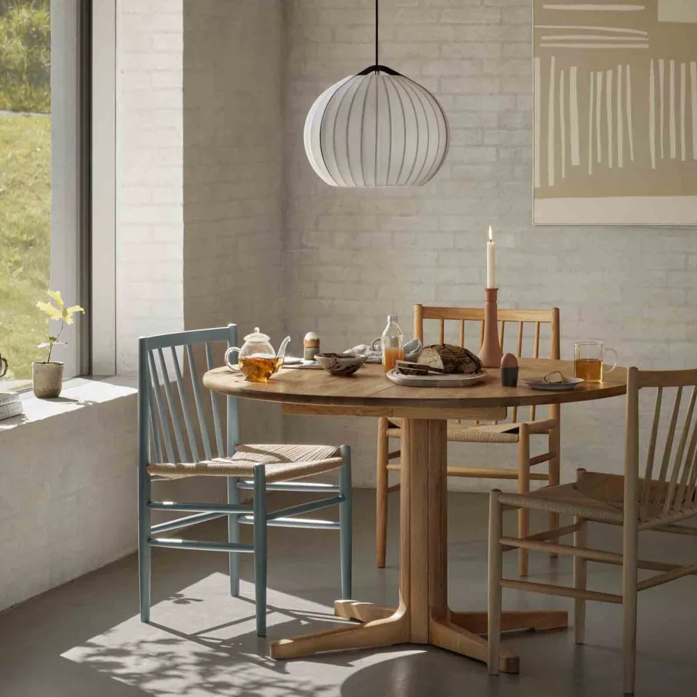 Denne fletserie af den kendte FDB-designer Jørgen Bækmark består af flere møbler, heriblandt den klassiske og ikoniske spisebordsstol J80. Stolen er fra FDB Møblers guldalder i 1950’erne, men har overlevet sin egen tid på grund af sit elegante og tidløse udtryk. J80, der også kan fås med armlæn og fungere som en fritstående stol, er behagelig at sidde i over længere tid, da den er fremstillet i kvalitetsmaterialer fra flet til det massive træ.