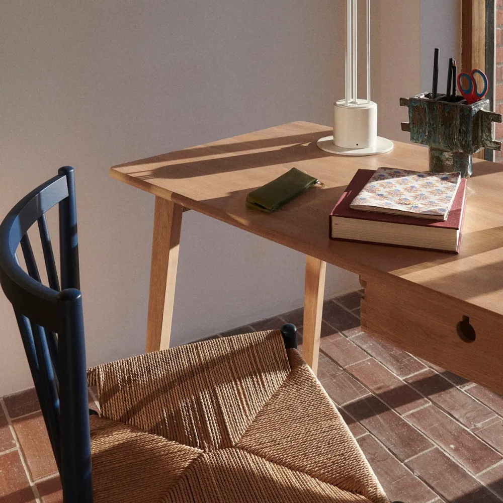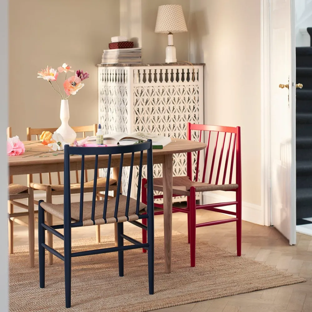 Denne fletserie af den kendte FDB-designer Jørgen Bækmark består af flere møbler, heriblandt den klassiske og ikoniske spisebordsstol J80. Stolen er fra FDB Møblers guldalder i 1950’erne, men har overlevet sin egen tid på grund af sit elegante og tidløse udtryk. J80, der også kan fås med armlæn og fungere som en fritstående stol, er behagelig at sidde i over længere tid, da den er fremstillet i kvalitetsmaterialer fra flet til det massive træ.