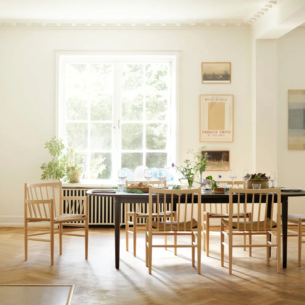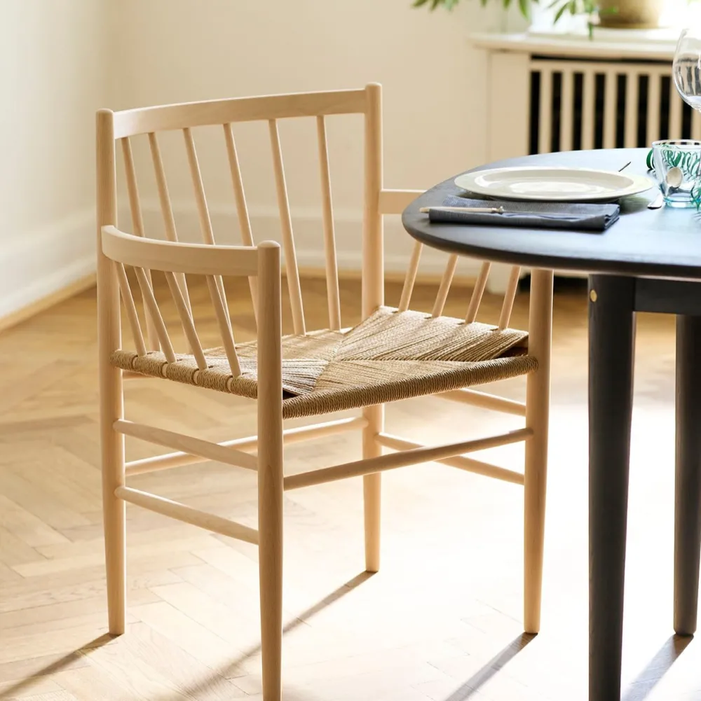 Denne fletserie af den kendte FDB-designer Jørgen Bækmark består af flere møbler, heriblandt den klassiske og ikoniske spisebordsstol J80. Serien er fra FDB Møblers guldalder i 1950’erne, men har overlevet sin egen tid på grund af sit elegante og tidløse udtryk. J81, er udgaven med armlæn og kan fungere som en fritstående stol. Den er behagelig at sidde i over længere tid, da den er fremstillet i kvalitetsmaterialer fra flet til det massive træ.