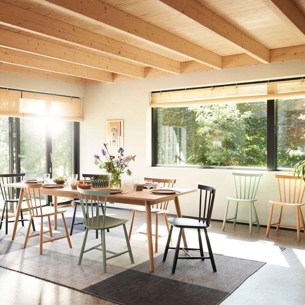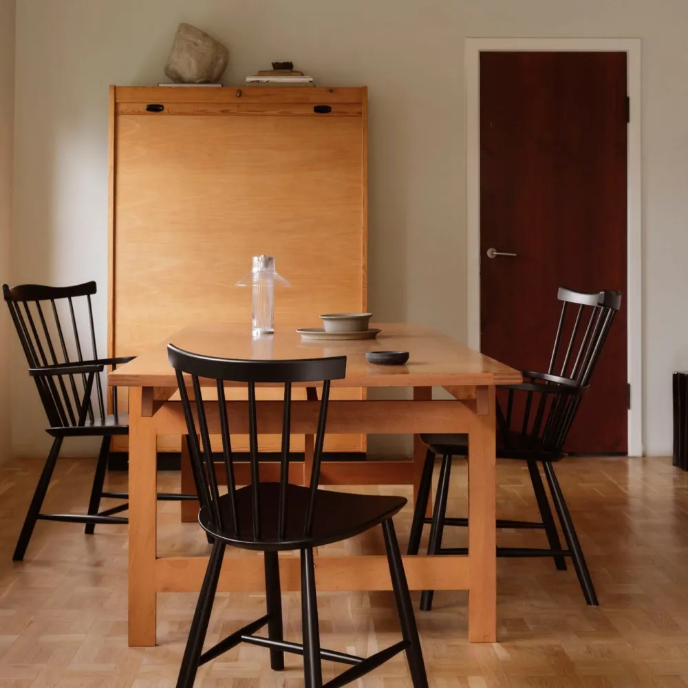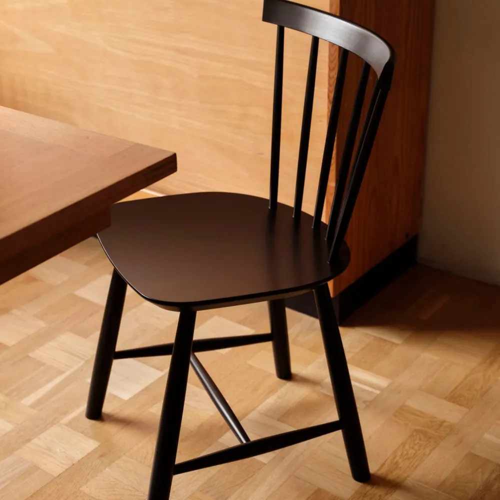Pindestolen J46 fra 1956 er en af FDB Møblers største succeser. Det anslås, at Poul Volthers tidløse klassiker er blandt de mest solgte stole i Danmark. Her er tale om en stol med et fuldendt formsprog og god siddekomfort, uanset om det er som køkkenstol eller spisebordsstol.