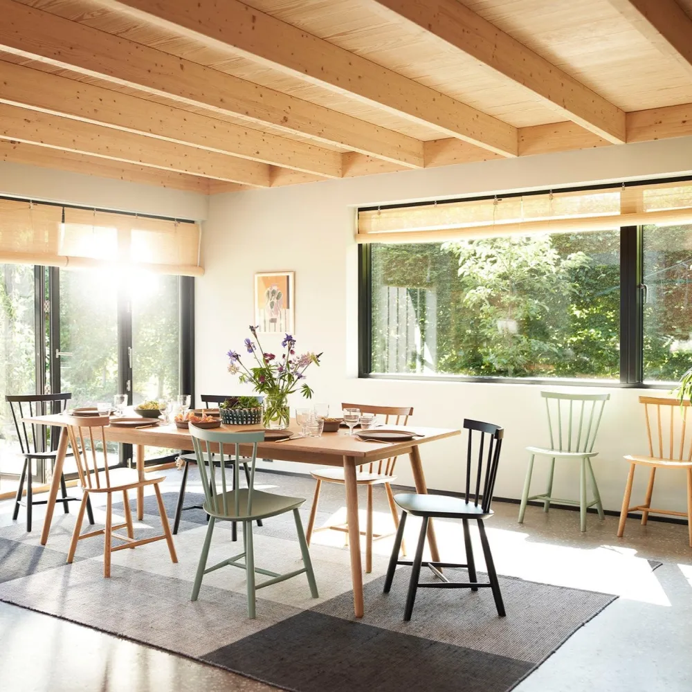 Pindestolen J46 fra 1956 er en af FDB Møblers største succeser. Det anslås, at Poul Volthers tidløse klassiker er blandt de mest solgte stole i Danmark. Her er tale om en stol med et fuldendt formsprog og god siddekomfort, uanset om det er som køkkenstol eller spisebordsstol.