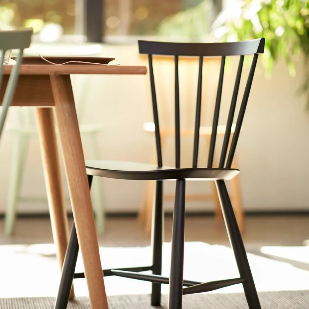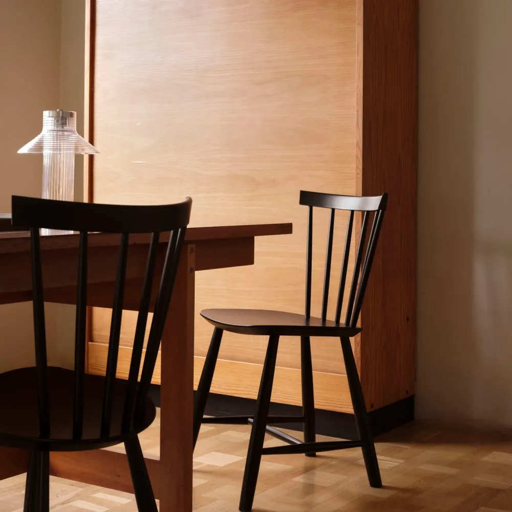 Pindestolen J46 fra 1956 er en af FDB Møblers største succeser. Det anslås, at Poul Volthers tidløse klassiker er blandt de mest solgte stole i Danmark. Her er tale om en stol med et fuldendt formsprog og god siddekomfort, uanset om det er som køkkenstol eller spisebordsstol.